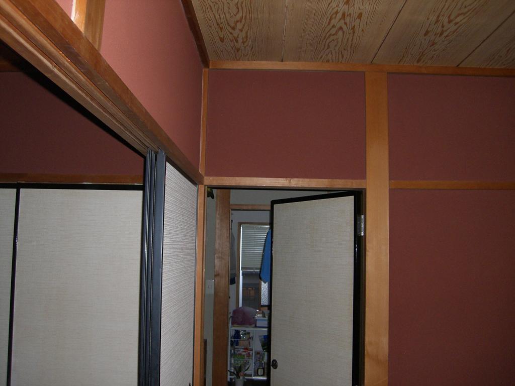 建具は高さが1m80cm、壁は赤茶色の漆喰仕上げです。